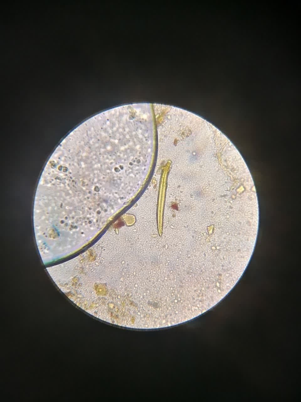 مشاهده میکروسکوپی لارو کرم نر و ماده کرمک (Pinworm) با نام علمی Enterobius vermicularis (Oxyuris) در مدفوع یک کودک پنج ساله در بخش انگل شناسی آزمایشگاه سپهر